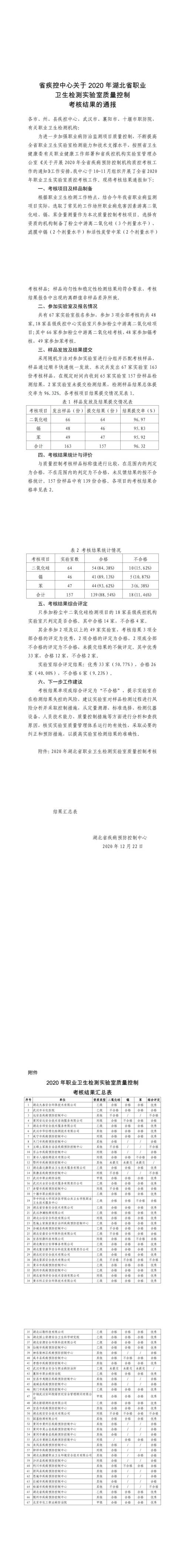 關(guān)于湖北公信安全科技有限公司參加2020年度湖北省職業(yè)衛(wèi)生檢測實(shí)驗(yàn)室質(zhì)量控制考核結(jié)果的公告